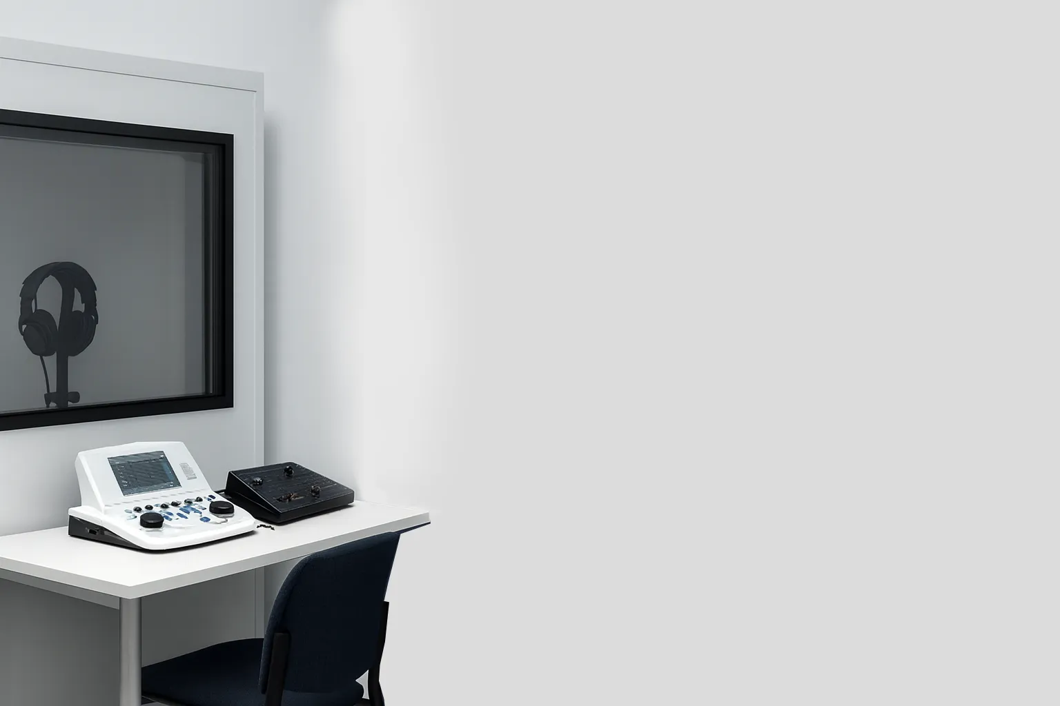 O consultório conta com uma sala de audiologia completa, equipada com tecnologia de ponta para diagnóstico preciso das funções auditivas e respiratórias.